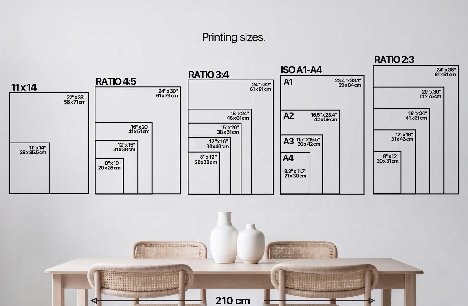 Our prints are available in the following sizes (the selection of sizes may vary depending on the type of image and the aspect ratio of the print):