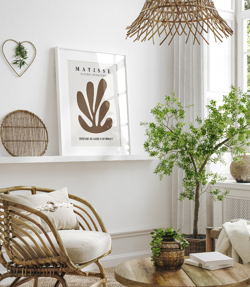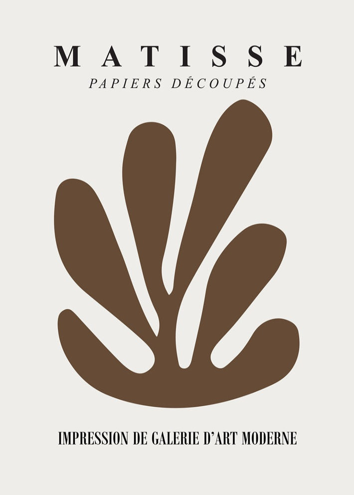 This stunning exhibition-style poster features a brown coral cut-out by Matisse. Shown on a beige background, this neutral poster would suit many decor styles.