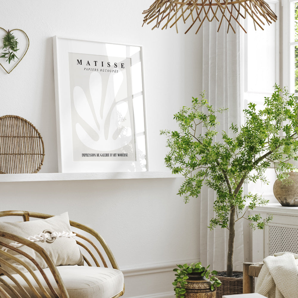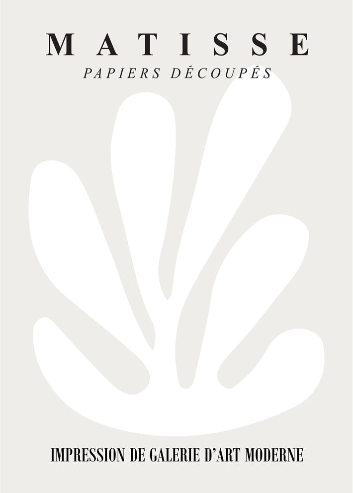 This stunning exhibition-style poster features a white coral cut-out by Matisse. Shown on a beige background, this neutral poster would suit many decor styles.